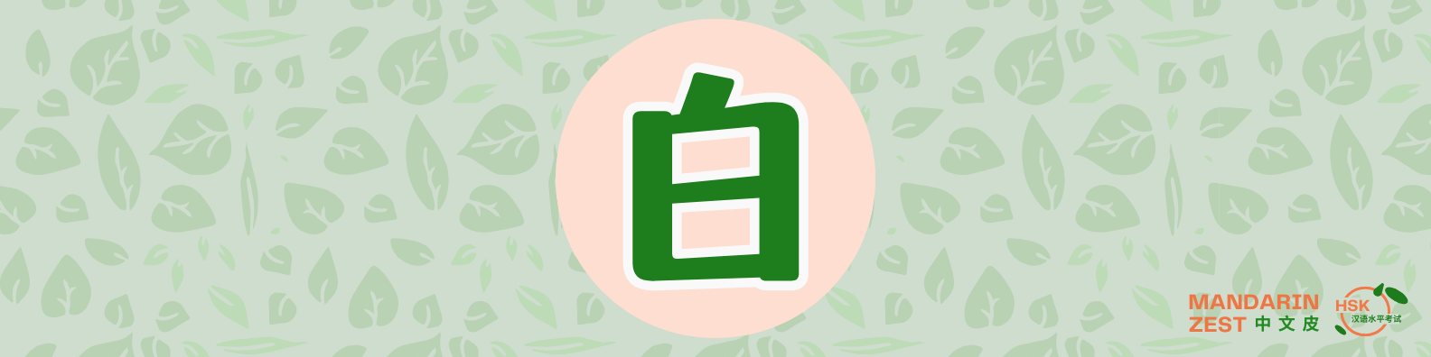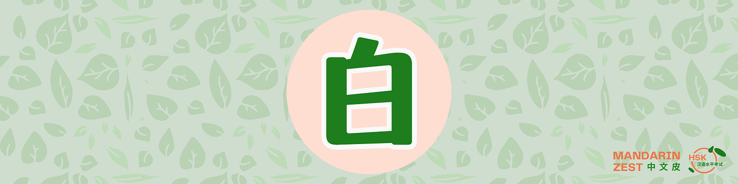 While 白 (bái) usually means "white," in grammar it has a special meaning: doing something in vain or with no effect.